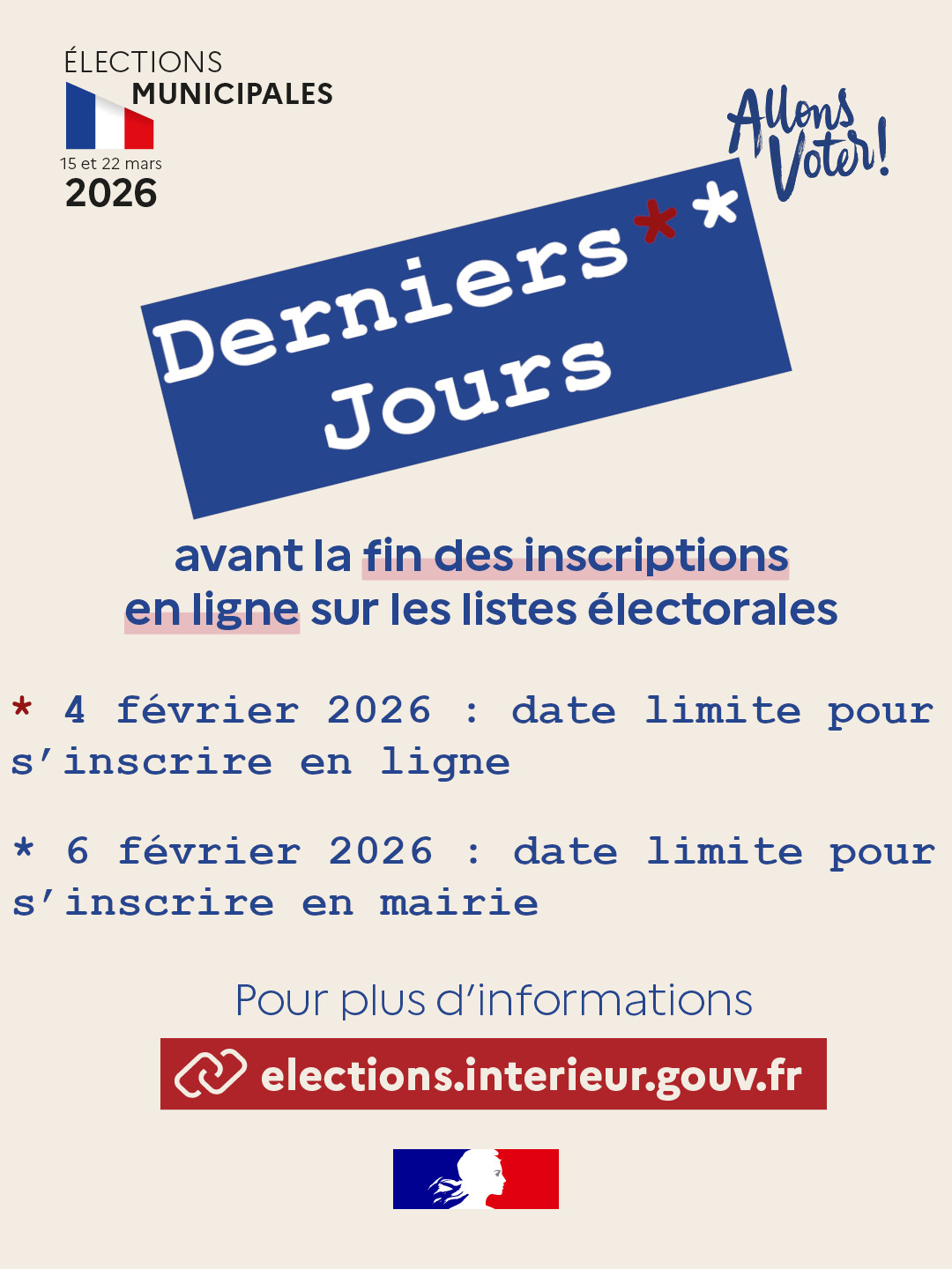 Pour pouvoir voter aux élections municipales des 15 et 22 mars 2026, il est indispensable d’être inscrit sur les listes électorales de votre commune.Les dates clés pour les élections municipales de mars 2026