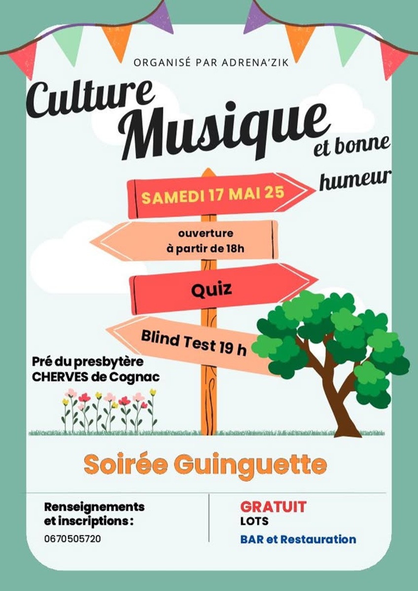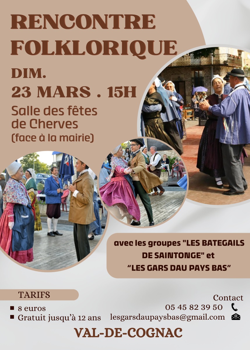 Municipalité : Le 13/01 Vœux du Maire et du Conseil Municipal 2026 à L'Abaca Détails Team Ouins Ouins : Le 16/01 à 20h Assemblée générale à la salle des fêtes du bourg de Cherves Médiathèque Municipale : Le 23/01 à 18h Conférence Philatélique à la médiathèque du bourg de Cherves Gratuit Détails Vivre en Borderies : Le 23/01 à 18h Assemblée générale à la salle des fêtes du bourg de ST Sulpice Détails Club de l’Amitié et de l’Age d’Or : Le 24/01 à 20h30 Annulé Sosie de Michel Sardou à L'Abaca Détails